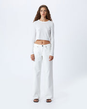 How do you describe the open weave technique and its role in creating a signature look for SLVRLAKE? Across the collection we offer five unique fabrications. Our signature pure cotton fabric is Italian made and is G.O.T.S. certified which is the highest organic standard. This unique fabric has the aesthetic of a vintage rigid denim while remaining luxuriously soft and enables us to achieve the most authentic vintage washes.