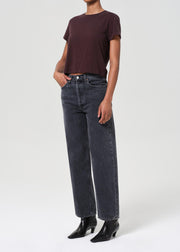 The Adine Shrunken Tee in Root from Agolde is a fitted tee fabricated in 100% Organic Cotton. The Adine Shrunken Tee is designed for a cropped fit with a relaxed silhouette and finished with short sleeves. Wear your Adine Shrunken Tee with your favourite Agolde Riley High Rise Jeans, an oversized coat and sneakers for a casual weekend look.