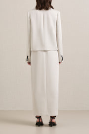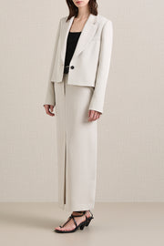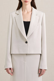 A.emery's Adys Crop Blazer in Oyster has been designed with modern simplicity in mind and crafted from fabric of Japanese Origin. A softly tailored, cropped silhouette with a single button closure and button lined cuffs. Dress this piece up or down as the perfect addition your capsule wardrobe.
