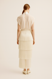 The Aire Bodysuit in Crema from Esse Studios is a refined, statement piece, designed to take you from day to night. The draped sheer silk bodice is gathered into high-waisted, double-layered knit briefs, creating a striking silhouette that contours the body. Perfectly for pairing back with tailored trousers or straight leg denim with pumps and accessories.