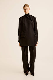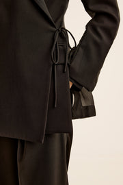 The Aire Tie Blazer in Black from Esse Studios is a refined take on timeless tailoring. The blazer is ESSE’s modern interpretation of masculine codes. Featuring an oversized silhouette, concealed wrap closure, and sheer organza panels at the back and sleeves, this piece balances structure with softness - designed to be worn, loved, and passed on.