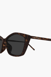 The Angular Cat Eye Sunglasses in Havana by Saint Laurent are crafted in extra-fine acetate. Featuring soft cat eye lines and a feminine silhouette, they are finished with the house logo in enameled letters. This style delivers refinement and ease in equal measure.