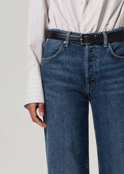 The Annina Trouser Jean in Westwood by Citizens of Humanity is a trouser inspired silhouette designed to sit high on the waist. The Annina Trouser Jeans are designed with an ultra-wide flared leg and finished with a button closure. Wear your Annina Trouser Jeans with a sleek, body-hugging bodysuit and blazer with point-toe heels for a dressier daytime look.