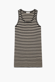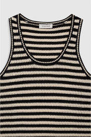 The Arie Dress in Black & Ivory Stripe from  Anine Bing is a warm-weather essential, crafted in a midweight cotton-viscose blend with a sheer, open crochet knit. Featuring horizontal stripe detailing and a scoop neckline, this mini-length silhouette hugs the body in all the right places while remaining breathable and relaxed for everyday wear.