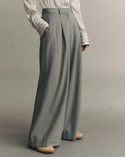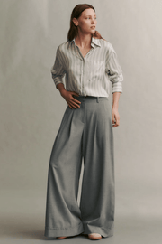 The Avery Trouser in Light Heather Grey from TWP is a refined mid-rise style cut from Italian wool twill, designed for a relaxed, straight-leg fit. Featuring inverted pleats that create an elegant drape from the hip, it is finished with side pockets, belt loops, and cuffed hems for a tailored touch. A zip-fly and hook closure complete the look, making it a versatile wardrobe essential. Pair with a crisp button-down or a silk blouse for an effortlessly polished ensemble.