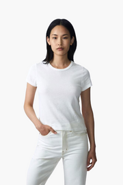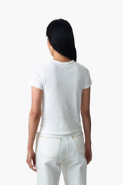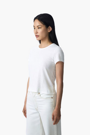 The SLVRLAKE Baby Tee in Natural White is crafted from a light weight open-end fabric for an authentic vintage look and feel. The Long Sleeve Baby Crop Tee is designed with a shrunken fit that sits snug on the body. Wear this long sleeve with your favourite light wash Slvrlake denim and pair with a chunky sneaker.