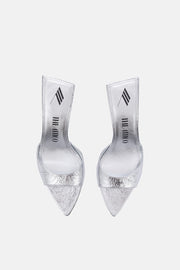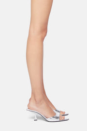 The Bes Mule in Silver by The Attico sparkles from silver laminated leather with metallic silver heel. The slip on mule features a open pointed toe which has a stiletto heel height of 6.5cm. The Bes Mule is the heel to wear all night long.