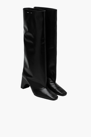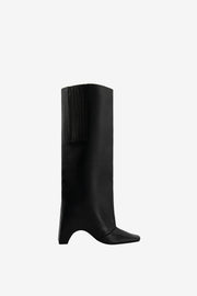 The Bridge Knee High Boots from Coperni reinterpret classic silhouettes with a bridge-inspired arched sole, a block heel, and a square-shaped toe. Designed with a subtle triangular structure, they create a sleek and flattering effect on the leg. Style for day to night.
