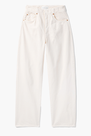 The Camilla Curve Waistband Jean in Ecru from SLVRLAKE is designed to flatter with a softly curved waistline and wide-leg silhouette. Crafted from 100% organic cotton, this style combines structure and ease, offering a clean, elongating look in a natural hue. Pair with a tucked-in blouse or cropped knit for effortless, modern styling.