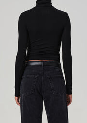 The Long Sleeve Turtleneck in black by Citizens of Humanity is a timeless staple, designed for effortless layering and everyday wear. Crafted from a luxurious blend of 94% Lyocell and 6% Spandex, it offers an ultra-soft feel with a body-skimming silhouette that moves with ease. The true black hue ensures versatility, making it a must-have in any capsule wardrobe.