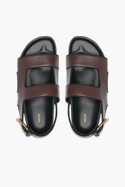 The Cher Sandals in Dark Chocolate/Black by Neous are the perfect chunky sandals. Formed with wide asymmetric straps, these sandals have a gold buckle and a low platform sole crafted in raffia. Pair this style with anything from a tailored trouser to a dress.