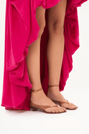 The Chloé Jelly Sandals in Sunny Brown by Chloé are a playful yet refined statement, crafted from transparent TPU with a thong front and a distinctive wavy sole. A shell-shaped heel adds a sculptural touch, while the oversized tonal Chloé logo on the sole enhances the modern aesthetic. Finished with a buckled ankle strap for an adjustable fit, these sandals are a summer essential with a contemporary twist. Pair with airy linen dresses or wide-leg trousers for an effortlessly chic warm-weather look.