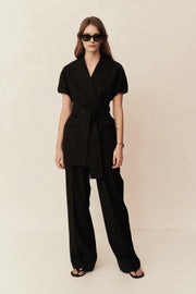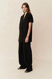 The Classico Draw Trouser in Black by Esse Studios are a relaxed and cool pant. The Classico Draw Trouser are designed with a high waist, an elasticised draw cord waistband, and fall relaxed. The feature of the Pant is the wide leg shape, with two side pockets for comfort. Pair the Classico Draw Trouser with a fitted tank and flat sandals for the spring weather.