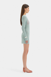The Costa Gathered Mini Dress in Tangerine Splice by SIR is a form-fitting mini dress crafted in sheer stretch mesh, featuring a vibrant tangerine overlay and contrasting blue underlayer. Designed with a mock neckline, long sleeves, and soft ruching through the waist and sleeves for a fluid, gathered effect. The layered construction adds dimension and can be worn together or separately for versatile styling. Wear it with metallic heels and statement cuffs for an elevated evening look.