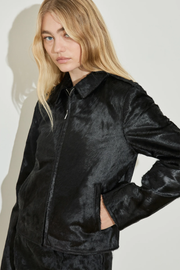 The Cowhide Classic Leather Jacket in Black by Maison Essentiele is an elevated reimagining of a wardrobe icon. Crafted in textured black cowhide, this fully lined jacket boasts clean lines and a structured silhouette. A minimal collar adds timeless appeal, making this piece a versatile essential for both everyday and evening dressing.