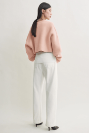 The Cropped Oversized Cardigan in Flamingo from TOTEME is a sculptural knit designed with a bold, modern silhouette. Crafted from a double-faced wool blend, it features a cropped, boxy fit with dropped shoulders and voluminous sleeves that extend past the fingertips. Finished with tonal metal buttons, this statement piece brings warmth and structure to elevated layering.
