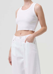 The Agolde Cropped Poppy Tank in White is an effortless essential and is the go-with-anything wardrobe staple. Crafted from the brands signature rib which gives a supportive but super breathable feel. Designed to fit close to the body with a flattering U-shape neckline - it's perfect for layering or styling solo. This new cropped length perfectly complements high-rise jeans and shorts.