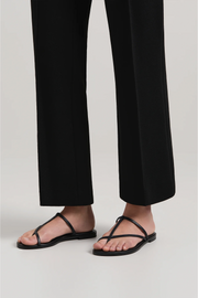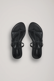 The Cyrus Sandal in Black from  A.emery is a modern essential with clean, minimal lines. Set atop an elegant, tapered footbed, the design features slim diagonal and horizontal leather straps that secure the foot with ease. Crafted from full-grain leather, the sandal balances understated refinement with everyday wearability.