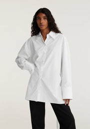 The Deconstructed Poplin Shirt from RÓHE reimagines the classic design with a modern twist. Featuring a detached placket for a structured, unique look, this shirt also includes double cuff details, a shirttail hem, and a slight dropped shoulder for a relaxed, effortless fit. Crafted from crisp 100% cotton poplin, it strikes the perfect balance between sophistication and casual ease. Pair with tailored pants or casual denim for a look that’s both chic and comfortable.