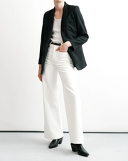 The Nili Lotan Diane Blazer in Black is a staple in every wardrobe that will elevate any look. This classic jacket is crafted in a luxurious wool blend, and slightly oversized closed with a centre front button and front flap pockets. Pair with jeans for a polished daytime look, or style over a mini dress with stilettos for a night out.