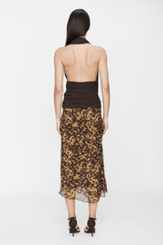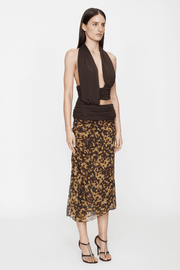 The Draped Cummerbund Jersey Top in Espresso from Christopher Esber is crafted from soft stretch jersey for a fluid yet sculpted fit. The plunging halter neckline and draped open back exude ease, while ruched panels wrap and define the waist, creating a refined, feminine silhouette.