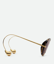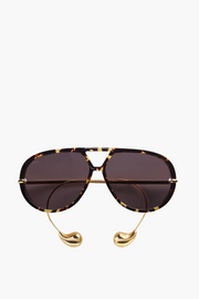 The Drop Aviator Sunglasses in Havana from Bottega Veneta are a classic aviator style, crafted from Eastman Acetate Renew—a material made with 27% recycled content. The lenses, composed of 39% bio-based polyamide, provide both clarity and comfort, while signature drop-shaped metal temple tips add a distinctive designer touch. A sleek and conscious eyewear choice that merges iconic design with eco-friendly innovation.