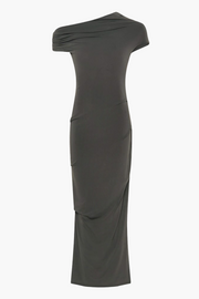 The Elemental Ida Dress in Mushroom from Paris Georgia is a timeless staple with an elegant yet effortless drape. Crafted in New Zealand from a soft, stretchy cupro rib fabric, this silhouette features their signature one-shoulder twist, designed to slouch off the shoulder for a relaxed yet refined look. A capped sleeve, side tucks, and a side split add a sculptural touch, enhancing the body's natural curves. A perfect choice for both day-to-night styling, pair it with minimal heels and delicate jewellery for an effortlessly chic look.