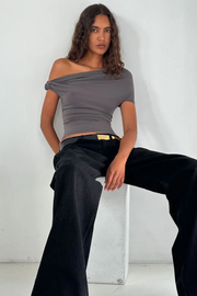 The Elemental Ida Top in Mushroom from Paris Georgia is crafted in New Zealand from a soft, stretchy cupro rib fabric. Designed with our signature one-shoulder twist, it offers an effortlessly chic, slouched-off-the-shoulder look, balanced with a capped sleeve on the other side. A versatile wardrobe staple, perfect for pairing with high-waisted trousers or a sleek skirt for an elevated everyday look.
