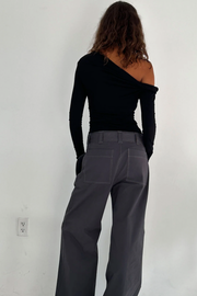 The Elemental Manahou Top in black from Paris Georgia is a long-sleeve top, crafted in New Zealand from 100% ZQ Certified NZ Merino Wool. Designed with our signature one-shoulder twist, it offers an effortlessly chic and slouched-off-the-shoulder look, balanced by a capped sleeve on the opposite side. A versatile wardrobe staple, perfect for layering or wearing solo for an elegant, understated statement.