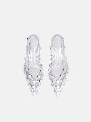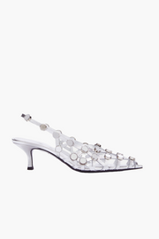 The "Grid" Slingback 50mm from The Attico in Silver Metallic nappa leather features intricate workmanship, delivering a refined and contemporary touch. Designed for both elegance and ease, this Italian-made shoe offers a sophisticated silhouette with a comfortable 50mm heel.