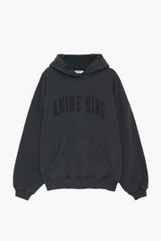 The Harvey Sweatshirt in Dark Washed Black by Anine Bing is an oversized hoodie fabricated in the brands signature cotton-fleece blend. The Harvey Sweatshirt is lightweight and designed with front pockets, long sleeves and features an 'Anine Bing' sport graphic at the chest. Wear your Harvey Sweatshirt with the brands activewear set, which includes the Brett Tank and Bran Legging.