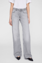 The Hugh Jean in Oyster Grey from Anine Bing channels an authentic ’90s attitude with its relaxed, low-slung fit and wide-leg silhouette designed to drape effortlessly. Crafted from midweight, non-stretch regenerative cotton denim, it offers a structured feel that softens over time. The washed grey finish is detailed with vintage-inspired grinding, hand sanding, and subtle highs and lows, creating the look of a naturally worn-in favourite. Finished with a raw-edge hem and extended inseam, this style is intended to be worn long and low for an undone, timeless effect.