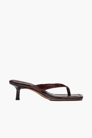 The Ida Mini Exclusive Sandal in choco croc embossed leather by Nelson Made is a refined staple reimagined through sustainable craftsmanship. Crafted from certified recycled leather with an embossed croc texture, this sandal balances elevated design with everyday wearability. Featuring memory foam cushioning underfoot and a modest block heel, it ensures comfort without compromising on style. Pair with tailored suiting or dresses for versatile sophistication.
