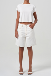 The Indra Short in Fortune Cookie by Agolde is your go-to for an effortless, laid-back style of denim shorts. Crafted from regenerative cotton, this relaxed silhouette features subtle fading and a raw hem for a vintage-inspired look. Style with an oversized shirt and slides for a weekend outfit.