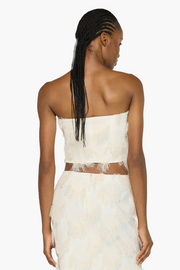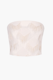 The Iona Tube in cream from Paris Georgia blends minimalist design with statement texture, crafted in Tassel Fringe fabric for a bold yet refined look. Designed for effortless styling, this strapless silhouette pairs perfectly with the Iona Skirt for a coordinated, chic ensemble. A modern, eye-catching piece perfect for evening wear or special occasions.