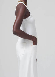 The Isabel Rib Tank in White by Citizens Of Humanity is fabricated from a mixed cotton fabrication and designed to hug the body. The Isabel Rib Tank is sleeveless and is deigned with a crew neckline, ribbed knit detailing throughout and sits straight on the hip. Wear your Isabel Rib Tank as a layering piece or on its own during the summer, tucked into your favourite Agolde jeans and sneakers.