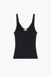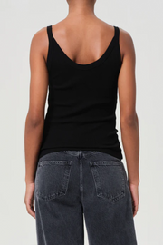 The Jordan Tank in Black by Agolde is a minimalist essential crafted from organic cotton in the label’s signature ribbed fabric. Designed with a subtle V-neckline and slim straps, it offers a smooth, flattering fit that’s perfect for layering or wearing solo. Soft and supportive with just the right amount of stretch, this versatile piece is an effortless wardrobe foundation that pairs seamlessly with high-waisted denim, skirts, or tailored separates.