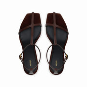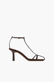 The Jumel Leather Sandals in Dark Chocolate by Neous are a t-bar style heel comprising of Italian leather. With delicate straps, this style beautifully frames the foot & is perfect for your next event. Pair this style with anything from a tailored trouser to a dress.