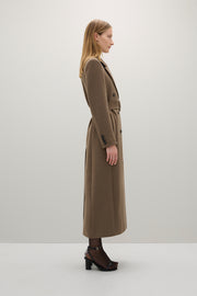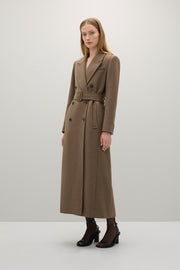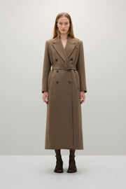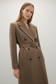 The Kenner Coat in Flax Melange from A.emery is a double-breasted design crafted from a luxurious wool blend, offering a structured yet refined silhouette. A timeless outerwear staple, featuring sharp lapels, a belted waist, and structured pockets, this coat balances sophistication with everyday wearability. A center-back vent enhances movement, making it a versatile layering piece for cooler seasons.