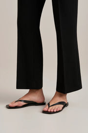 The A.Emery Kinto Sandal in Black are a modern flip flop. Crafted from full grain leather, these simple yet aesthetically pleasing sandals are designed with classic flip flop straps that sit atop a thin footbed. Pair the Kinto Sandals with any dress this summer.