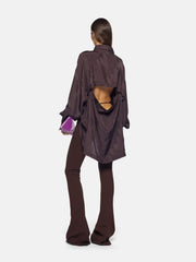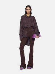 The Kota Shirt in Dark Brown by The Attico puts a characteristically playful twist on a classic long-sleeve design. Crafted from viscose, this top features The Attico embroidered logo print throughout the fabric and is enhanced by a shaped split at the hem. The perfect shirt to dress up or down, wear with boots and tailored trousers for a chic office to dinner look.
