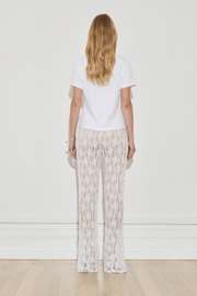 The Lace Pant in Cream from Maison Essentiele an elevated update to the brand's signature style, now reimagined in a delicate seersucker lace with a subtle texture. Designed with a straight leg and mid-rise waist, this style offers a clean, elongated silhouette. The addition of stretch and a soft elastic waistband ensures a flattering and comfortable fit, making it ideal for both layering and standalone styling.