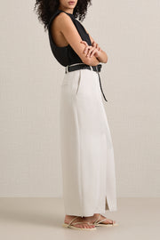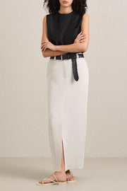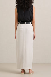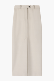 A.emery's Larley Skirt in Oyster is a full-length silhouette with a high waist and an alluring central split. This softly tailored skirt offers structure and has been crafted from fabric of Japanese Origin. Style with a fitted top and sandals for a relaxed yet polished look.