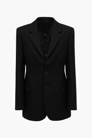 The Longline Blazer by WARDROBE.NYC in Black is a tailored essential with defined shoulders and elongated contour lines through the body. With a defined silhouette, this style contours the body & flatters the wearer's waist. Layer this style over a dress or pair back with the Denim Low Rise Jean or the Bonded Slim Trouser for versatile dressing.