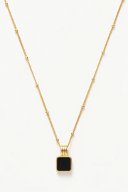 The Lucy Williams Square Onyx Gemstone Necklace in Gold by Missoma is a semi-precious addition to your jewellery layers, crafted with timeless minimalism. Paired with a delicate chain, the bold square Onyx pendant, known as the protection stone, creates a distinctive focal point. A versatile piece that elevates everyday wear or adds meaning to evening styling.