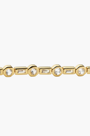 The Lucy Williams Tennis Necklace in Gold from Missoma is a reimagined classic from the Lucy Williams x Missoma collaboration. This elevated tennis necklace features a striking combination of baguette and round cubic zirconia stones set into geometric bezels. With a gleaming gold finish and secure signature clasp, it offers a refined sparkle ideal for solo styling or layered stacks. A modern heirloom that shines from day to night.