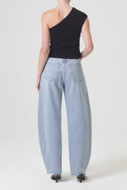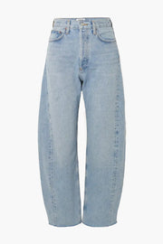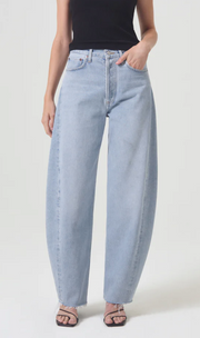 The Luna High Rise Pieced Jean by Agolde in Void is an exaggerated curved denim style that will soon become your favourite jean. The Luna High Rise Pieced Jean accentuates the waist and creates a full-length relaxed leg look. The Luna High Rise Pieced Jean features a pieced insert detailing at the outseam that creates the exaggerated bowed leg silhouette. Wear with a heeled sandal and a white tee.