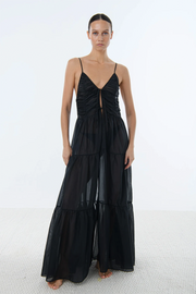 The Maeve Open Front Maxi Dress in Black from More Noir is crafted from a diaphanous cotton-silk blend voile that floats effortlessly with every step. Fully lined for comfort and coverage, it offers an open silhouette that balances playful airflow with polished proportions, an elegant staple you’ll reach for season after season.