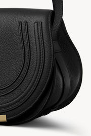 The Marcie Small Saddle Crossbody Bag in Black by Chloé is crafted from a grained calfskin. True to the iconic Marcie line, this practical and compact bag combines a distinct 70's spirit with a romantic, bohemian touch. The design features a fold-over front flap with cinch fastening at main compartment, embossed logo and concealed welt pocket at face. The strap can be adjusted to wear it across the body or on the shoulder, perfect for a day to night, everyday bag.