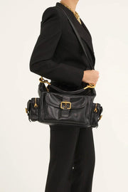 The Medium Double Camera Bag in Black by Chloé is crafted from natural shiny buffalo calfskin. This double-carry style features multiple pockets and gold hardware. This bag will take you from day to night with limitless styling options.